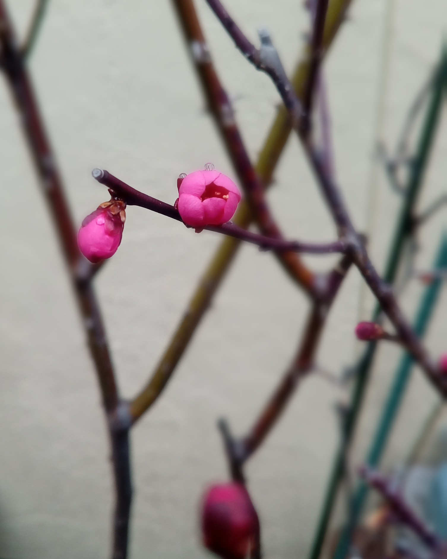 木瓜は逞しいけれど野梅は原種なので花が少ない。でも明日咲きそう(*´ω`*)。