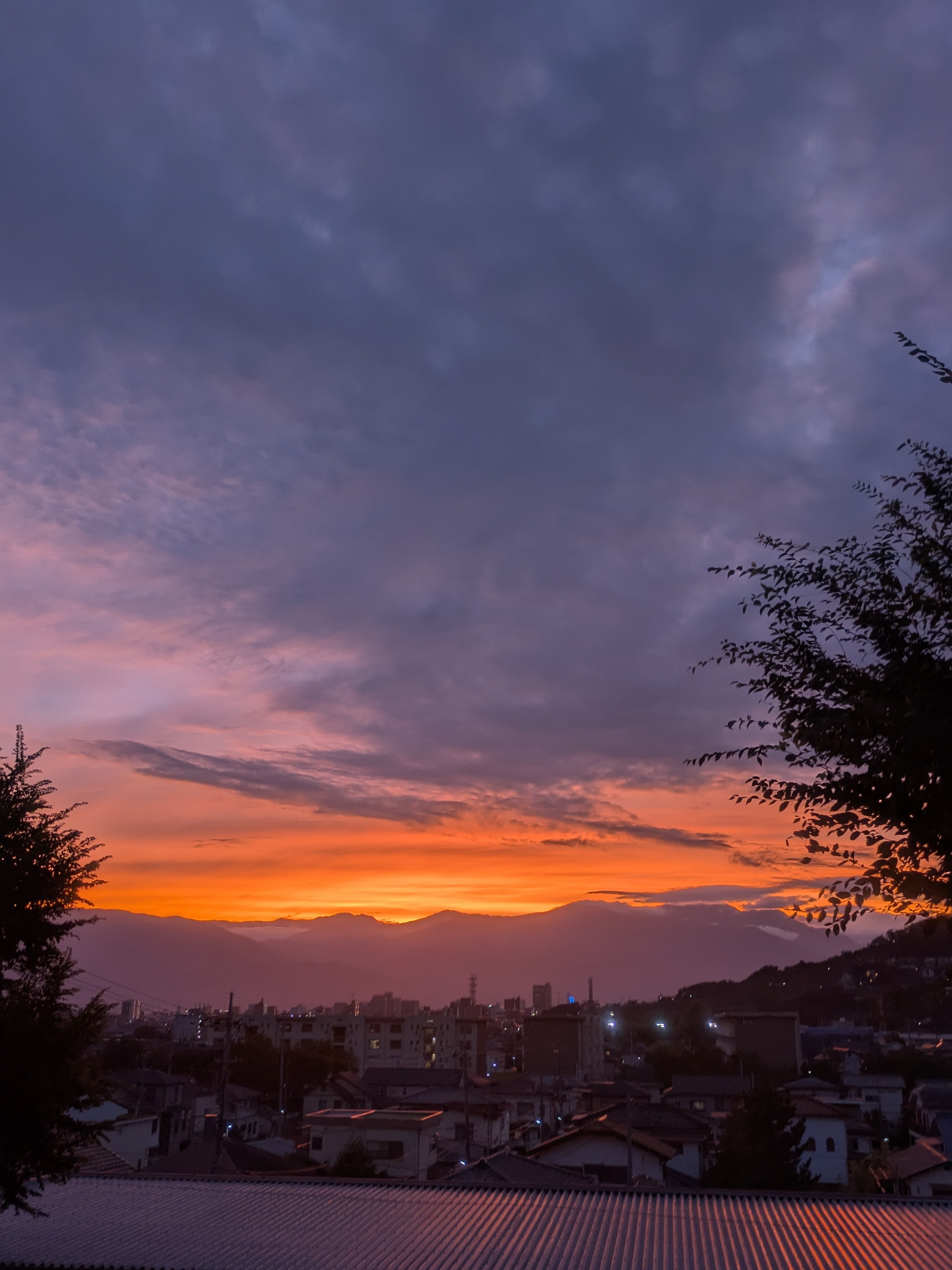私もこの夕暮れのオレンジ色と茜色と紫と群青が黒に吸い込まれていくひとときが大好きです。この世のすべての色があるのを目のあたりに出来る事象ですね。