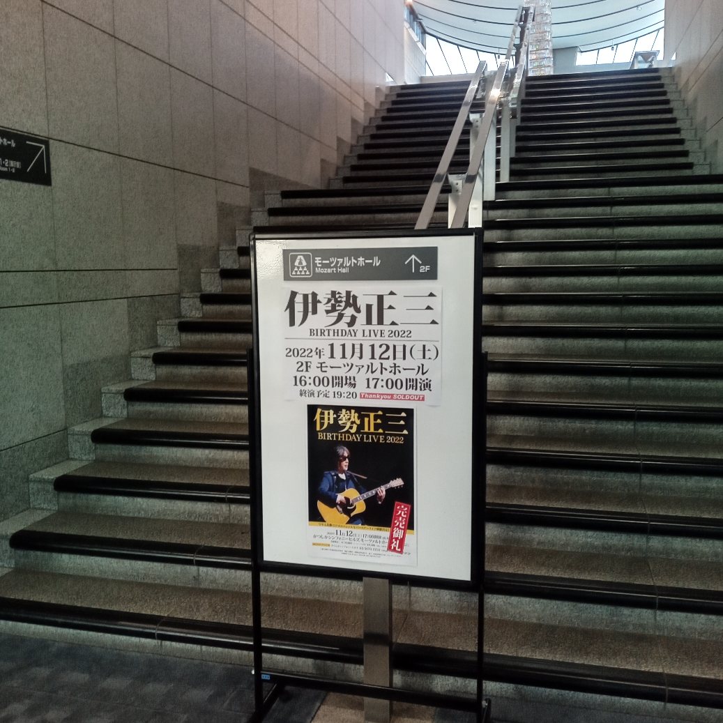 シンフォニーヒルズでは一年ぶりの知人と合流し、開場も余裕があったのでエントランスで別の知人を探したり、一瞬コロナ禍を忘れそうなほど楽しい気持ちでした。でも、立ち話をしている人たちで「今のうちに伊勢正三を一回くらい観ておこうと思ってさ」的なことを話している人が何組かいて、いつもと違う客層を如実に感じました。昨年の久保やんの訃報で急に昔を懐かしむ気になった方たちがいらしてるのかな?同行の人が「そんなこと言うと他のお客さんたちが気を悪くするよ?」ってフォローしてくれていました。