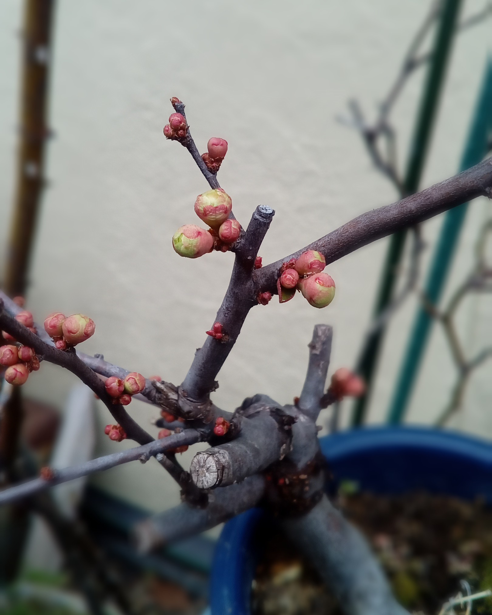 木瓜は逞しいけれど野梅は原種なので花が少ない。でも明日咲きそう(*´ω`*)。