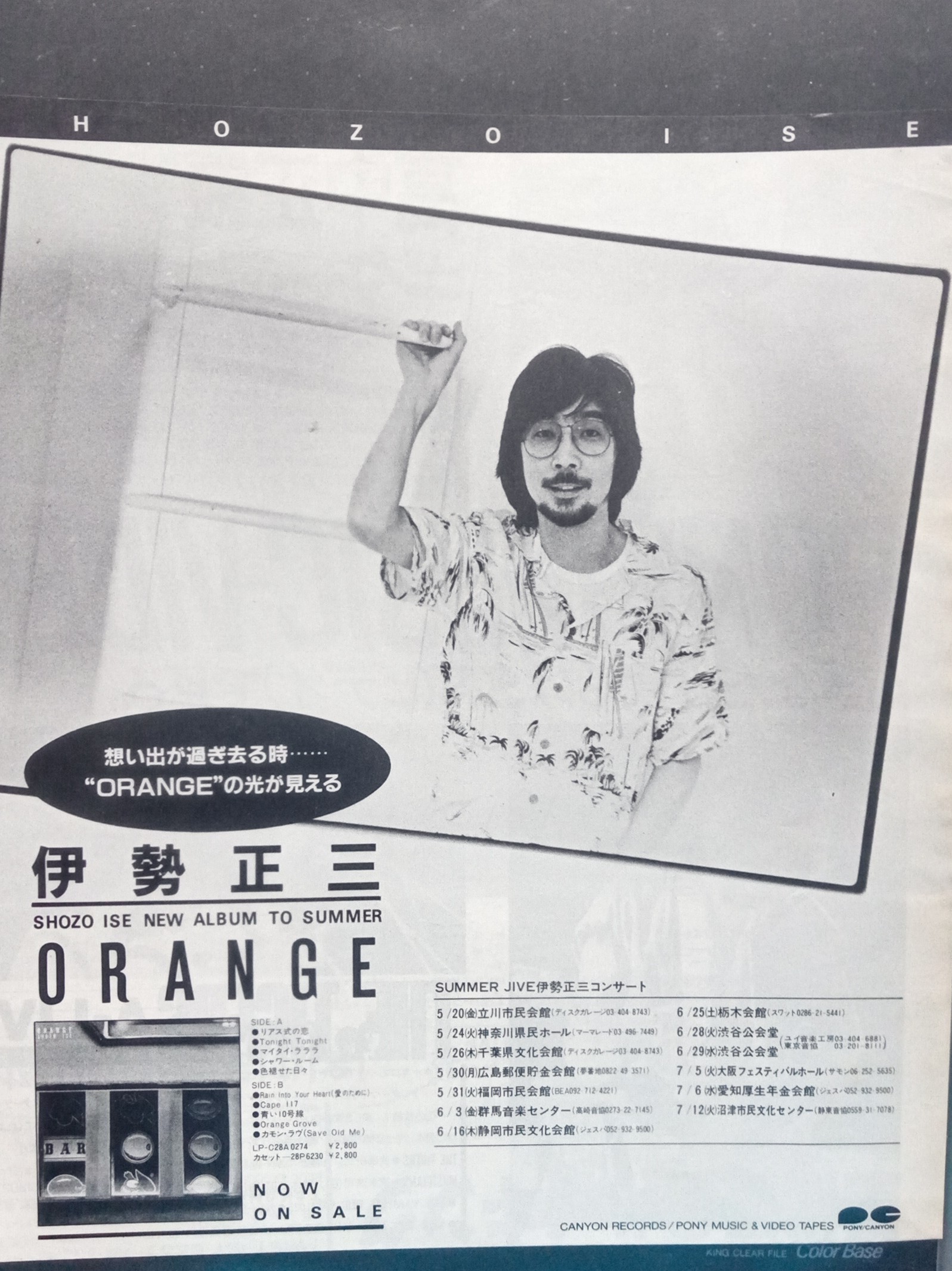 今回発売される音源のツアーではありませんが、翌年83年のアルバム『ORANGE』発売の頃の広告が出てきたので載せておく〜(*´ω`*)。 これまた当時高校の授業中に下敷きに入れてニヤニヤしていたやつです(笑)。